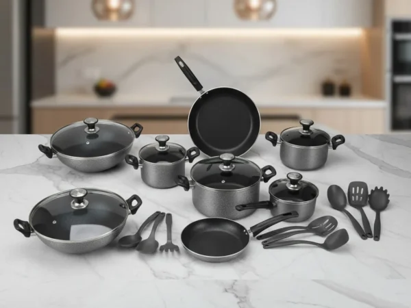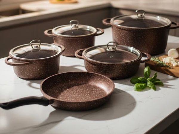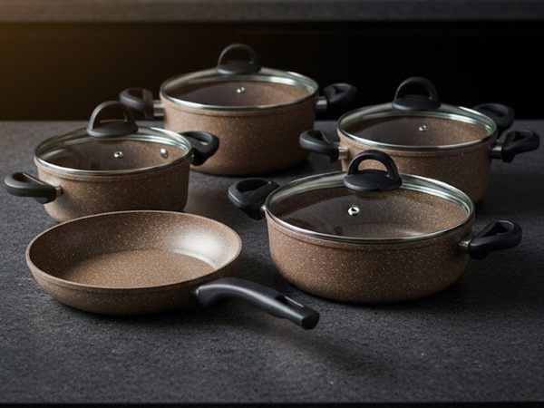 Falez 9-Piece Premium Granite Non-Stick Cookware Set – Made in Turkey | Healthy Low-Oil Cooking (ON 01)