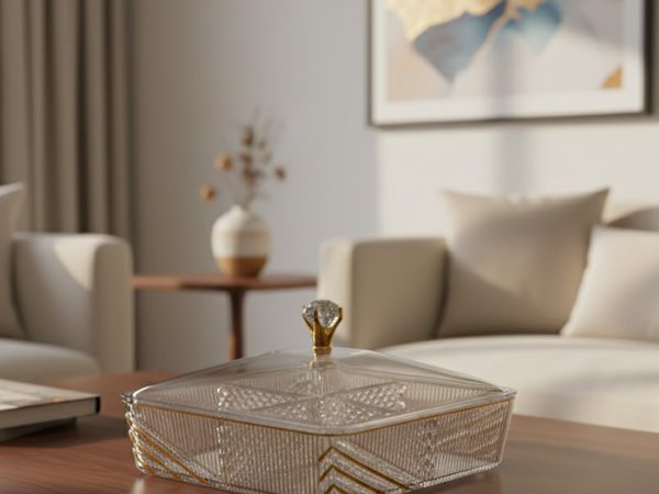 Crystal-Cut Multipurpose Snack Tray with Lid – 4 Section Compartment (ON 01)