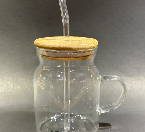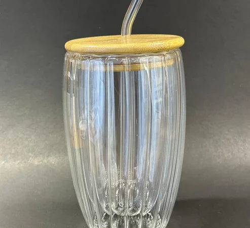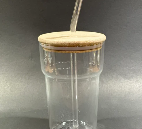 ICE TEA GLASS WITH STRAW BIG WITH LID