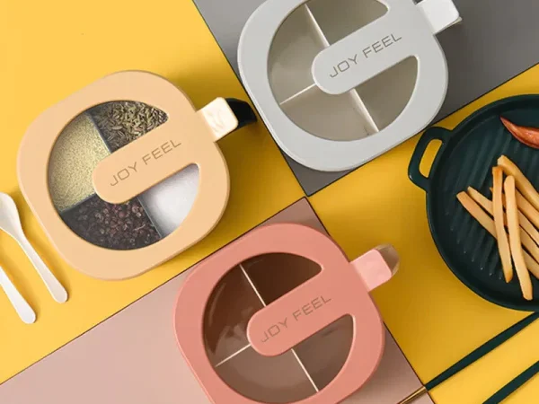 Seasoning Box Four Compartments in One Spice Jar – salt Paper Container Rack Household Kitchen Storage Spoon with Lid CHARACTERSTICS