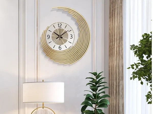 Radiant Elegance: Orbital Golden Wall Clock