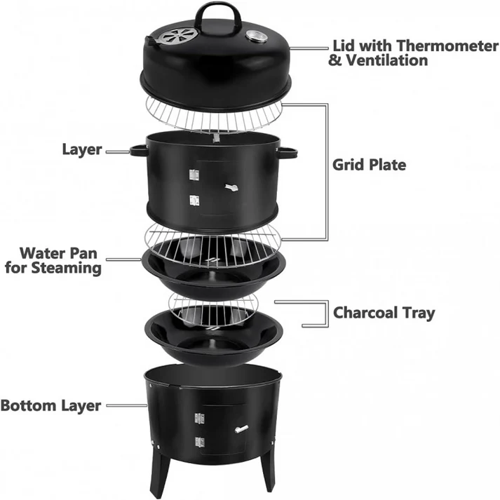 3 In 1 Vertical Charcoal Smoker,16 Inches Separable BBQ Smoker Grill Combo With Built-In Thermometer & Easy TEMP Adjustable Vent For Outdoor Cooking (SB 01)