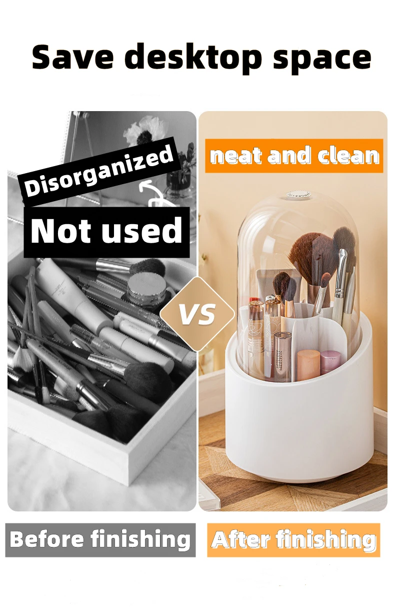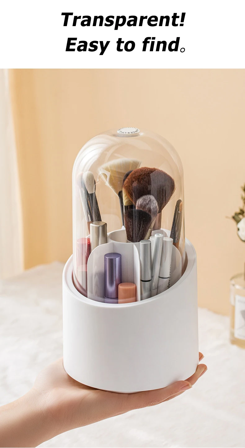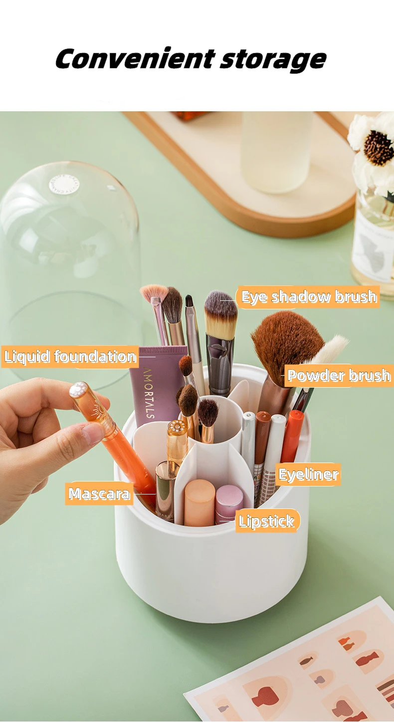 360 Degree Rotating Makeup Brush Storage Box Desktop Cosmetic Brushes Organizer Lipstick Eyebrow Pencil Eye Shadow Brush Holder