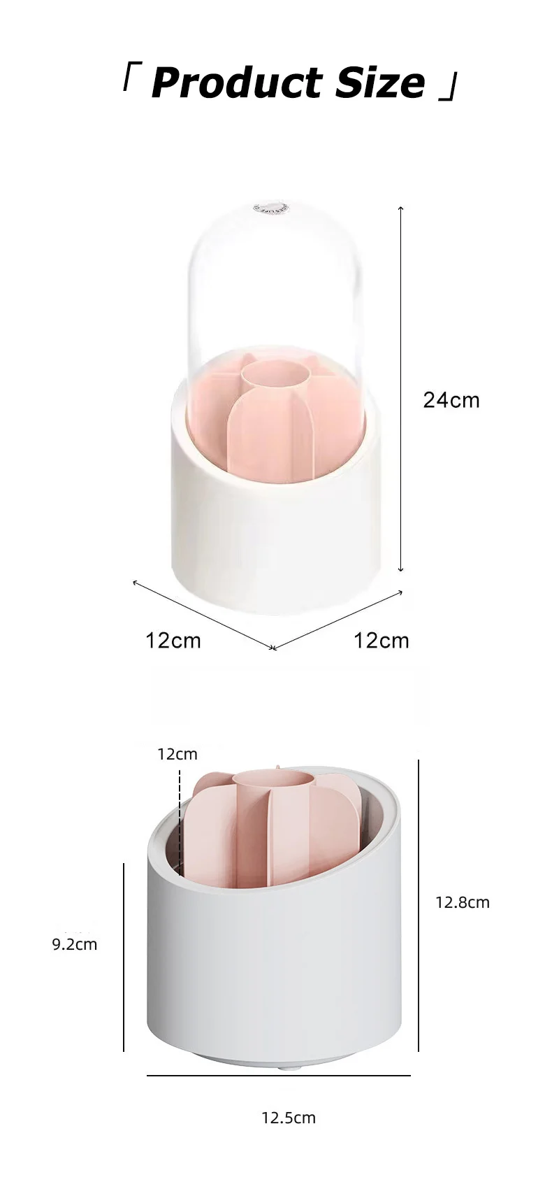 1. The 360° rotating storage box is made of PP+PET material, which is durable, fashionable and beautiful.