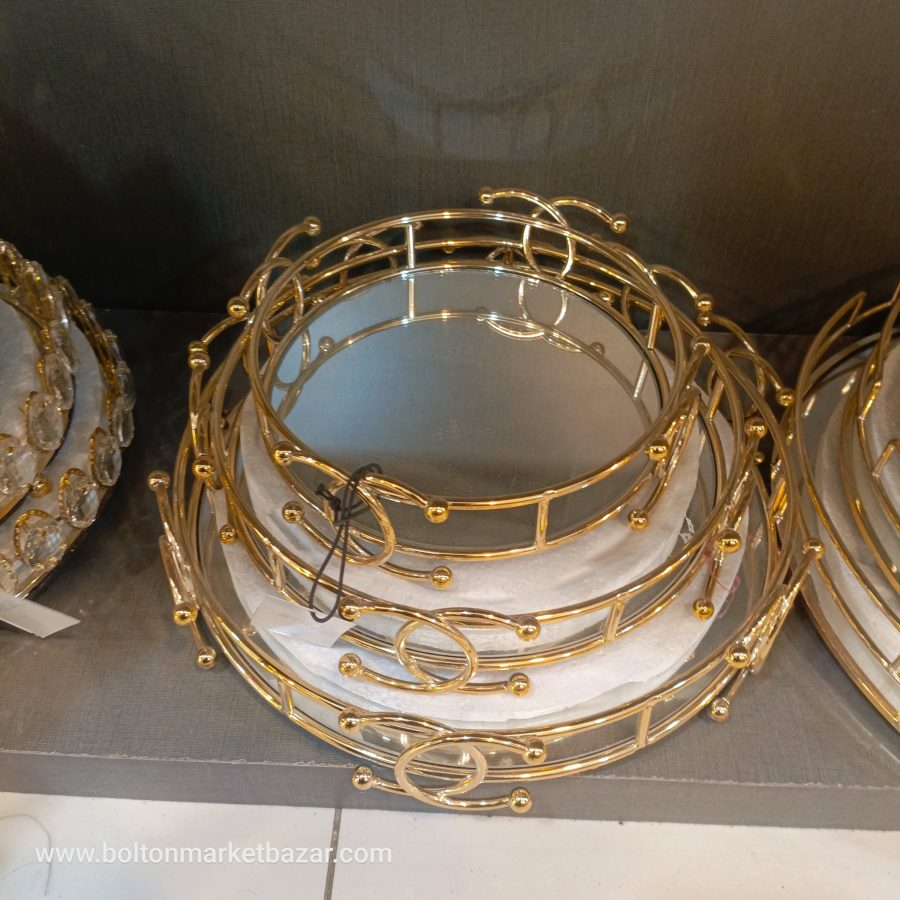 New Look Table Decor 3pc Metal + Mirror Tray 01