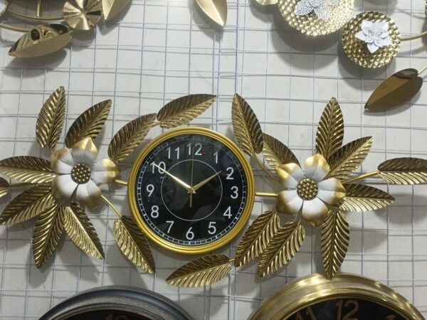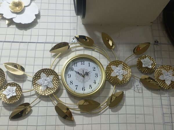 Premium Quality Imported Metal Big Wall Clock With Golden & White 0rchid Leaf Design.